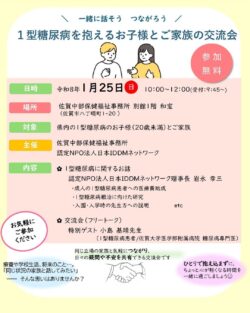 - 対 象 佐賀県の1型糖尿病のお子様(20歳未満)とご家族