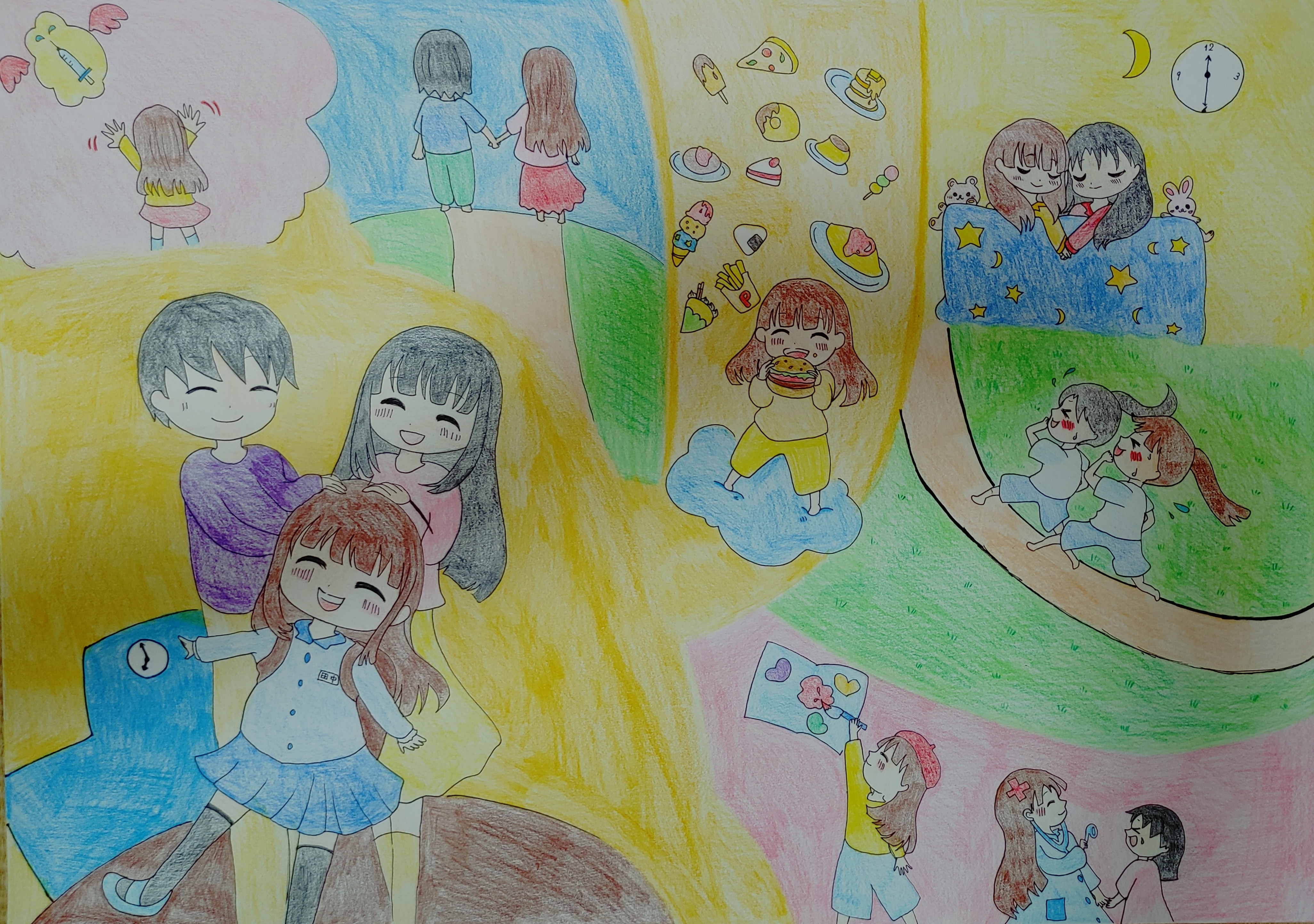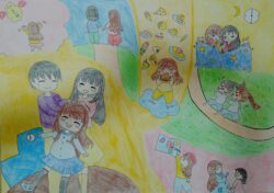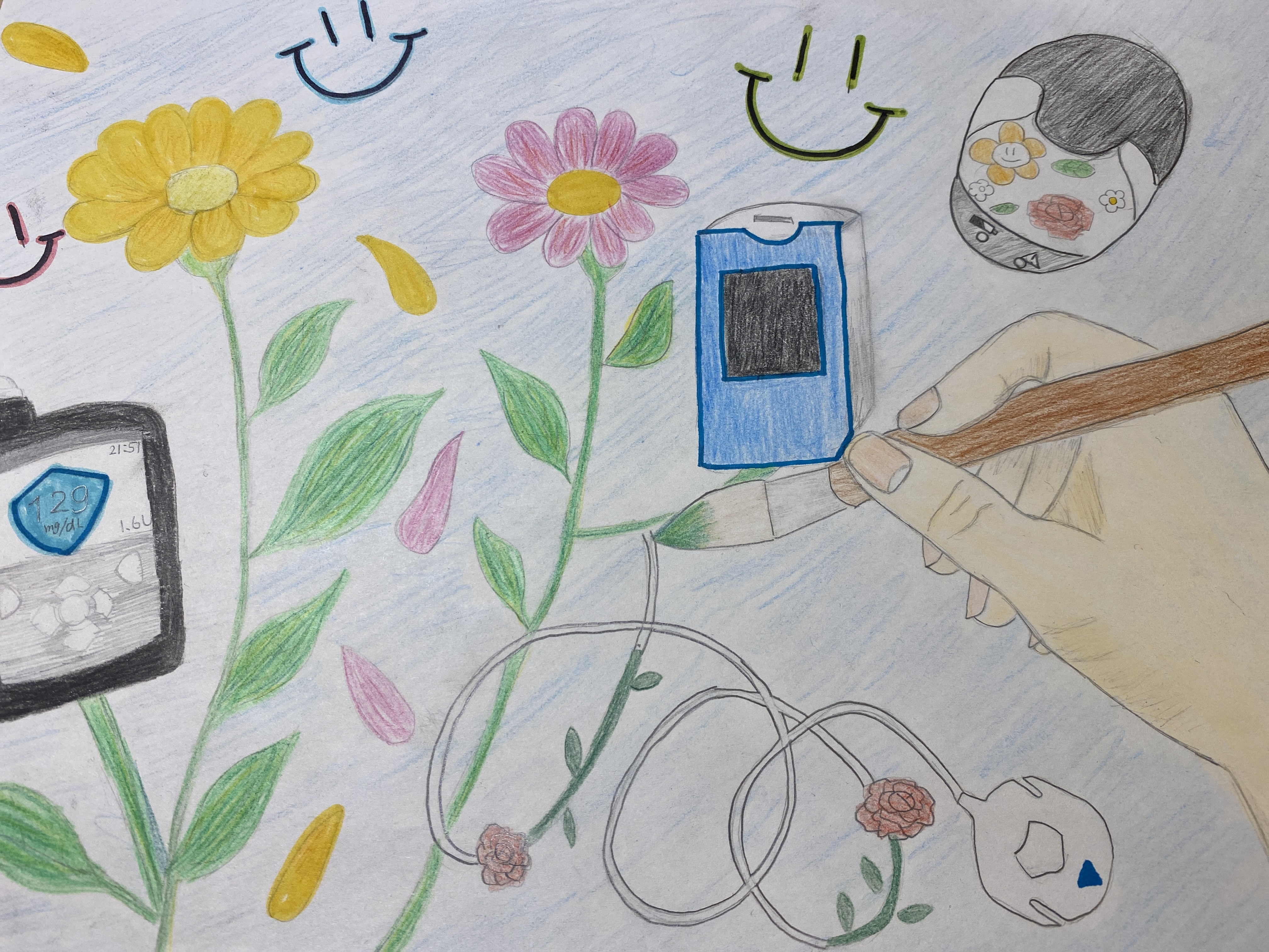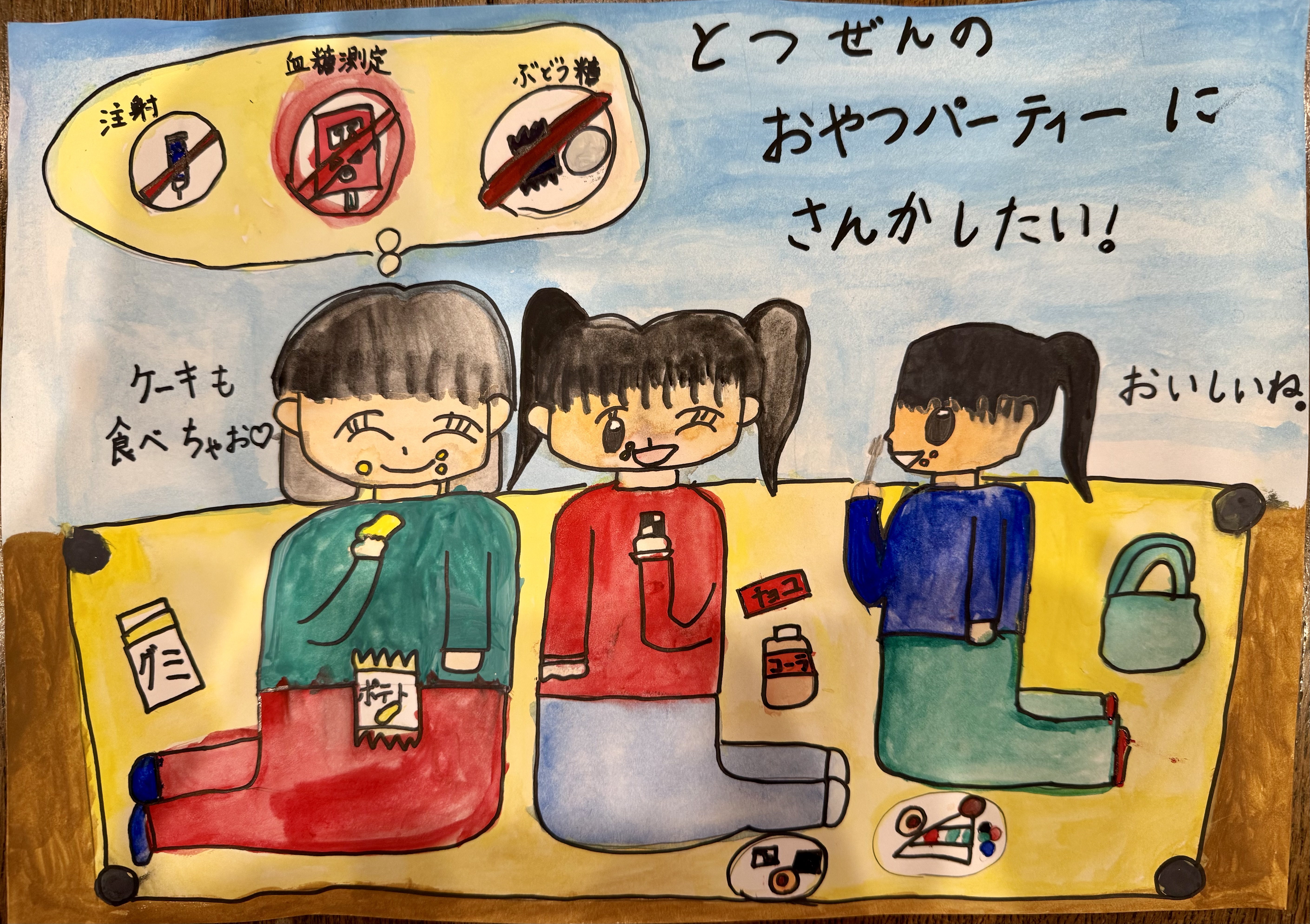 もし1型糖尿病が治る時代が来たとしても、私は1型糖尿病のことをどういう病気でどういう治療をしてきたか、そして何より私たちがどのように向き合って共に生きてきたか。それを後世に伝えたいです。私は絵を描くことが大好きです。絵の世界でこの気持ちを表現してみました。これからも自分の絵を通して、1型糖尿病のことを伝えていきたいです。