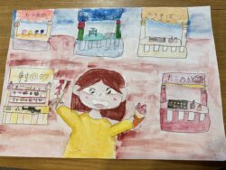 おいしそうな絵をかきたくて、絵の具をつかって細かいところまでがんばりました。