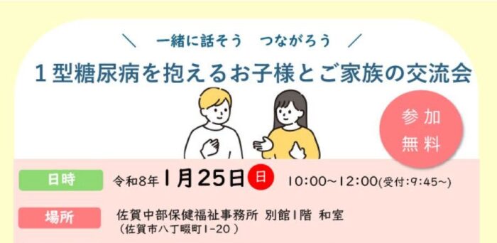 | 対象 | 佐賀県の1型糖尿病のお子様(20歳未満)とご家族 |